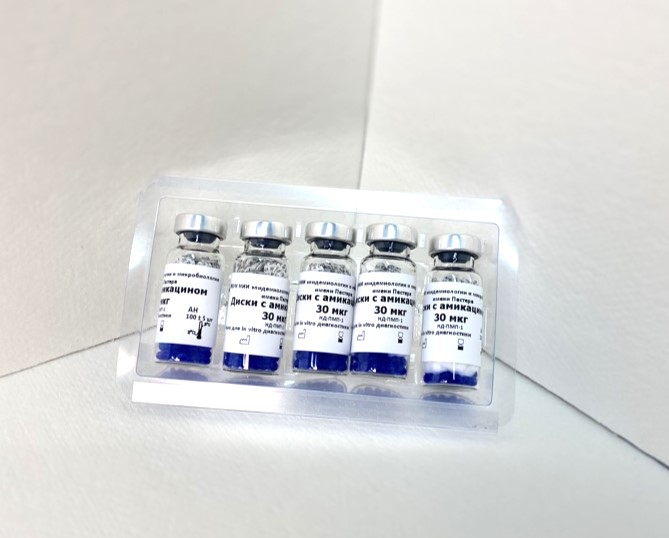 Набор предназначен для определения чувствительности возбудителей разных заболеваний человека, выделенных из патологического материала больных, к различным противомикробным препаратам, применяемым для лечения. В состав набора входят диски картонные, пропитанные растворами различных противомикробных лекарственных средств. Один диск рассчитан на проведение одного определения чувствительности микроорганизмов к соответствующему противомикробному препарату. Набор состоит из отдельных компонентов медицинского изделия «Набор дисков для определения чувствительности к противомикробным препаратам-1 (НД-ПМП-1)». Прошли регистрацию в составе НД-ПМП-1 (РУ № ФСР 2009/06290 от 16.08.2011). Область применения – клиническая медицина.