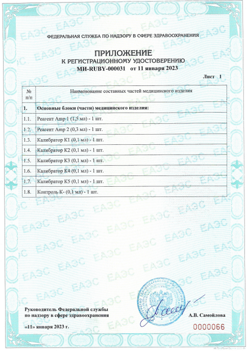 Набор реагентов предназначен для количественного определения в образцах периферической крови (цельная кровь, сухая капля крови) ДНК TREC (эксцизионное кольцо T-клеточного рецептора) и KREC (эксцизионное кольцо рекомбинационного каппа-делетирующего элемента В-клеточного рецептора) в качестве вспомогательного средства для оценки Т- и В-клеточного иммунодефицита у человека, включая скрининг иммунного статуса у новорожденных. Анализ TREC и KREC дает ценную диагностическую и прогностическую информацию в отношении широкого спектра заболеваний, связанных с нарушением Т- и/или В-клеточного звена иммунитета, что позволяет выявлять пациентов для более углубленного обследования и своевременного назначения адекватной терапии. Набор реагентов «TREC/KREC-Amp PS» выпускается в одном варианте комплектации, рассчитанном на 100 определений. Состав: реагенты Amp1, Amp2, Калибраторы K1, K2, K3, K4, K5 и Контроль К-. Транспортирование при температуре от 2 до 8 °С в течение не более 5 суток. После доставки МИ необходимо поместить реагенты на хранение в соответствии с Инструкцией по применению (к набору прилагается). Условия хранения в соответствии с Инструкцией по применению набора (к набору прилагается). Область применения – клиническая медицина.