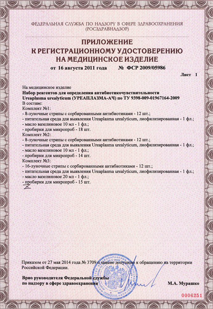 Набор реагентов для определения антибиотикочувствительности Ureaplasma urealyticum. Комплект №1.