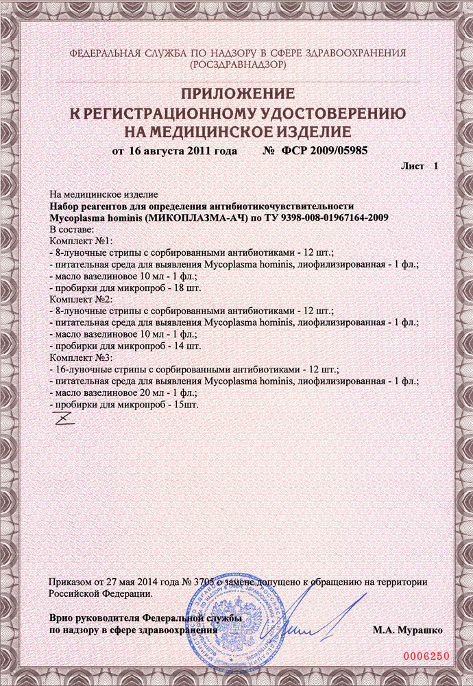 Набор реагентов для определения антибиотикочувствительности Mycoplasma hominis. Комплект № 1 .