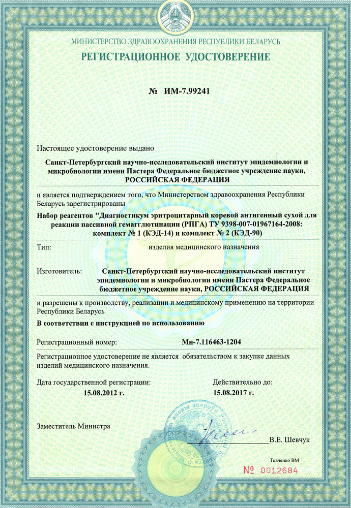 Набор реагентов "Диагностикум эритроцитарный коревой антигенный сухой для реакции пассивной гемагглютинации (РПГА)" комплект №2
