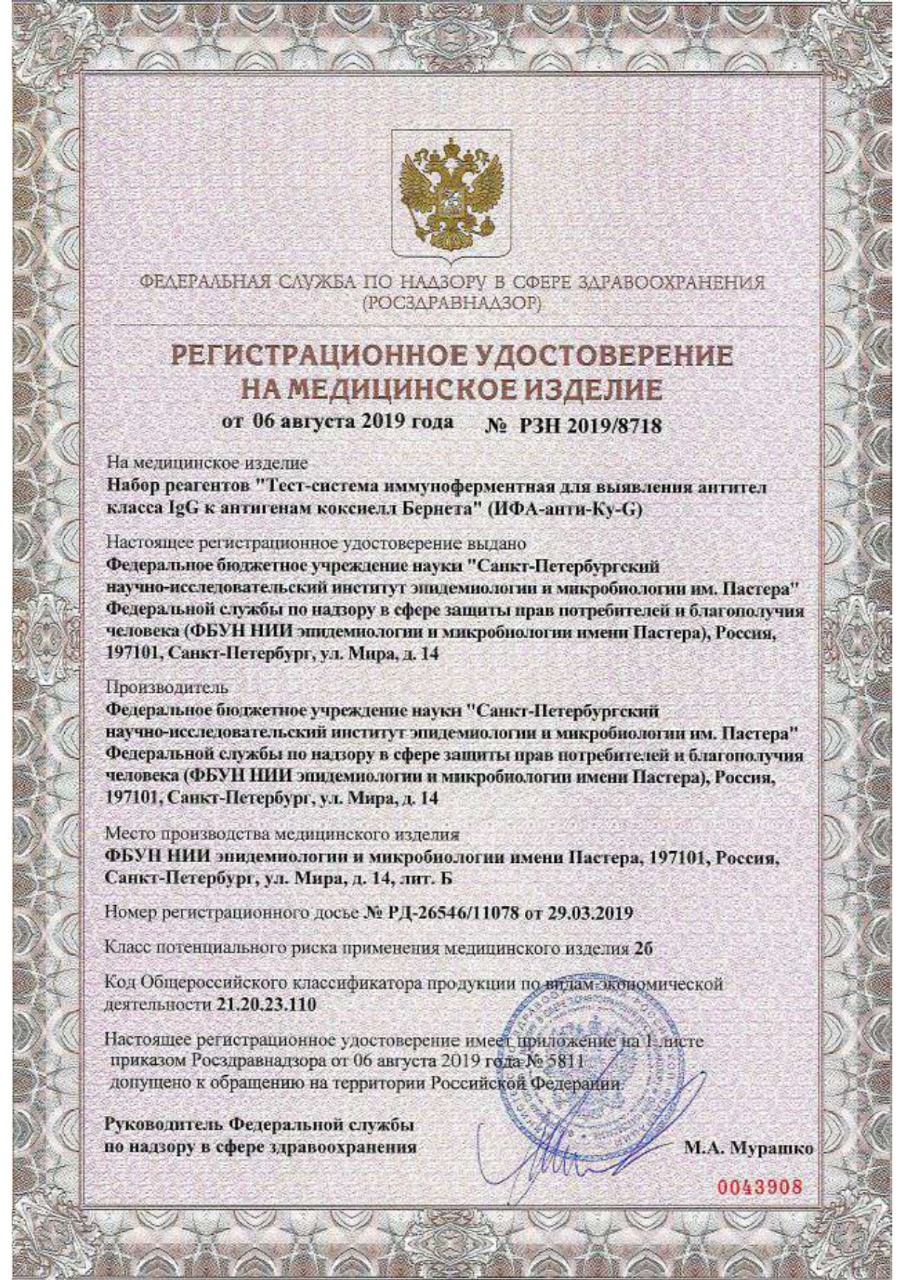 НАБОР РЕАГЕНТОВ "ТЕСТ-СИСТЕМА ИММУНОФЕРМЕНТНАЯ ДЛЯ ВЫЯВЛЕНИЯ АНТИТЕЛ КЛАССА IGG К АНТИГЕНАМ КОКСИЕЛЛ БЕРНЕТА"
