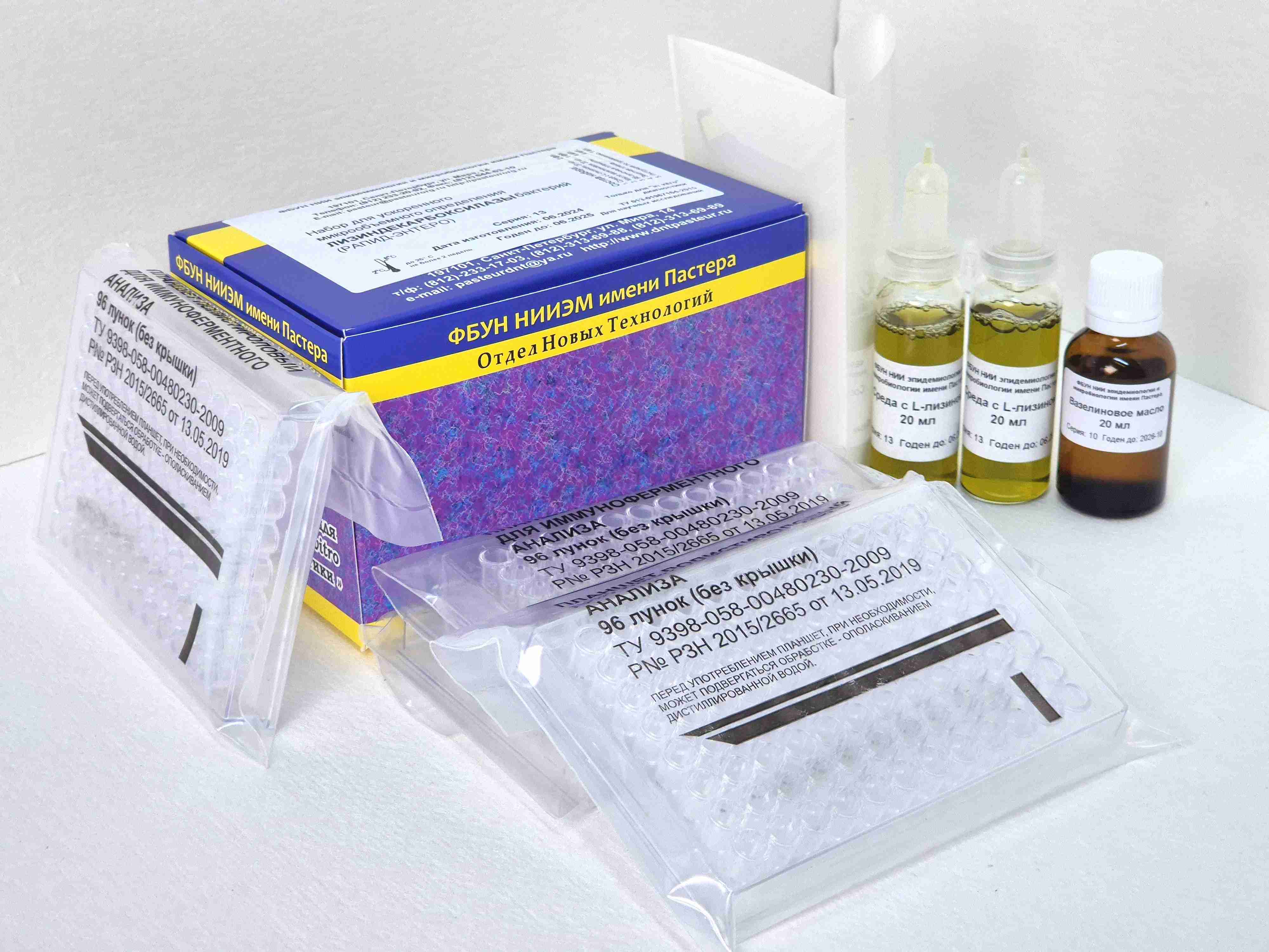 Набор предназначен для биохимической идентификации бактерий по выявлению их лизиндекарбоксилазы. Наиболее часто этот тест используется для определения лизиндекарбоксилазы у энтеробактерий, вибрионов и неферментирующих бактерий. Состав: среда на лизиндекарбоксилазу - 2 фл. по 20 мл; масло вазелиновое - 1 фл. (20 мл); защитная плёнка - 4 шт.; планшеты 96-луночные - 4 шт. Все среды и компоненты набора готовы к немедленному использованию. Область применения – для научных исследований.